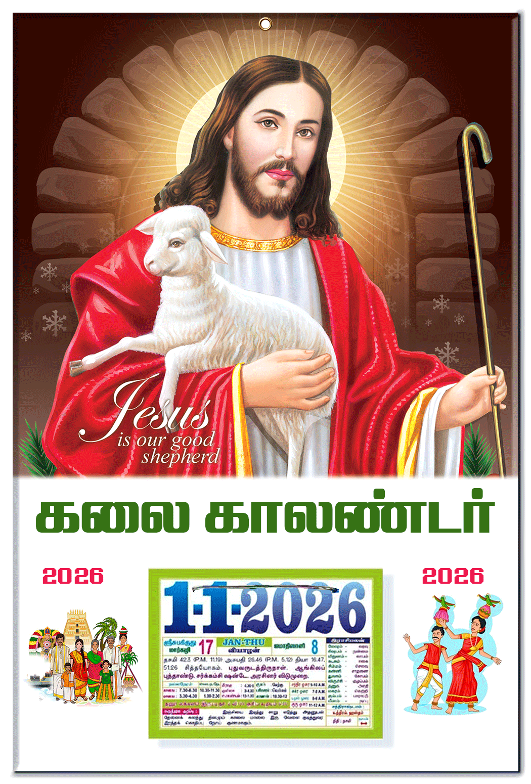 - 130 GSM picture calendar with poly board glossy laminations perfect pasting front side picture, backside panjangam, slip is bond with kambi.