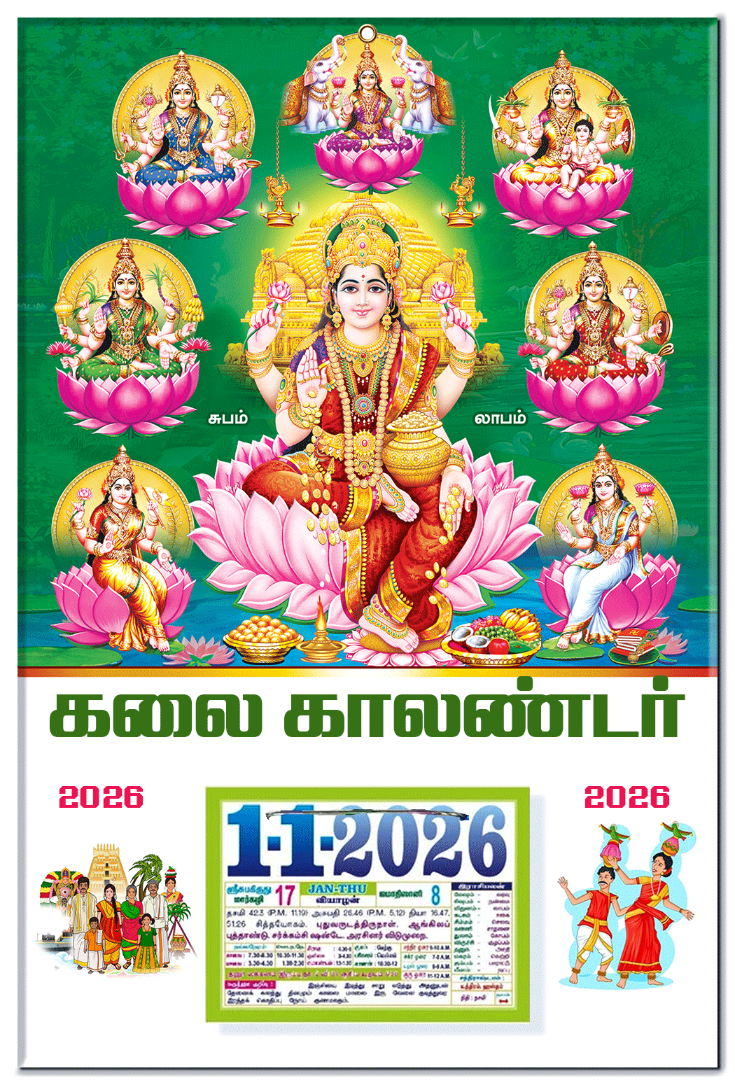 As the strongest of the market, KALAI CALENDAR produces the highest quality of traditional Tamil Calendars and leads by guiding his own market.